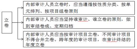 内部审计人员(立卷人)完成归类整理,经项目负责人审核、档案管理人员检查后,按规定进行编目和归档,向组织内部档案管理部门办理移交手续。