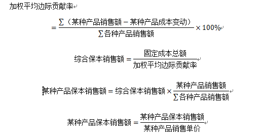 (3)保本作业率=保本销售量÷正常销售量=保本销售额÷正常销售额×100%