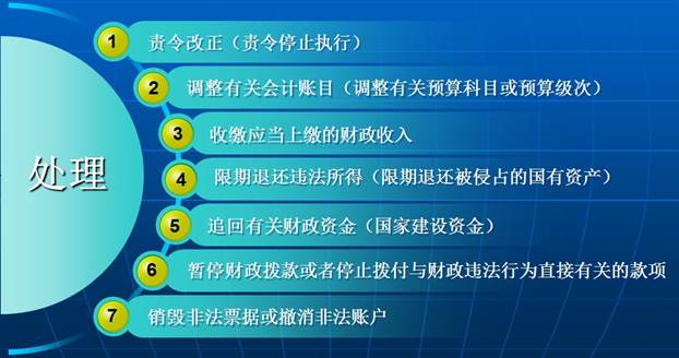 《财政违法行为处罚处分条例》中对财政违法行为的处理措施基本可分为7种: