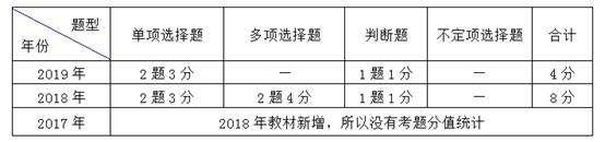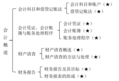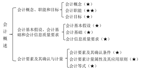 本章系会计学基础,内容包括会计概念、职能和目标,会计基本假设、会计基础和会计信息质量要求,会计要素及其确认与计量,会计科目和借贷记账法,会计凭证、会计账簿与账务处理程序,财产清查,财务报告等。近3年考试题型为单项选择题、多项选择题和判断题,分值在6分左右,属于比较重要的章节。