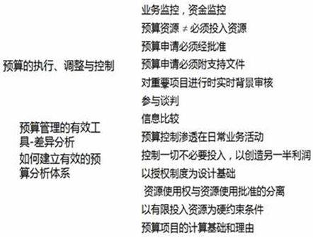 1.审议确定预算目标和政策程序 2.审定下达正式预算 3.根据需要调整或修订预算 4.分析研究预算执行的业绩报告,制定控制政策和奖惩制度 5.仲裁有关预算冲突 |