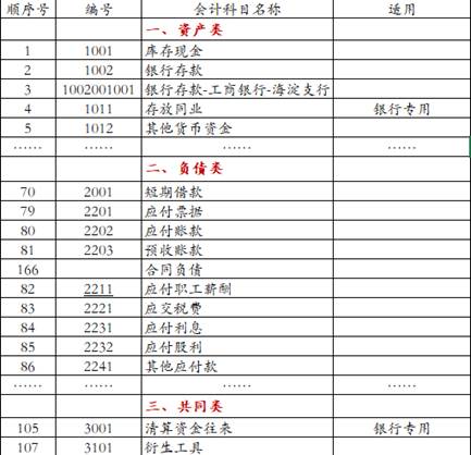 (五)会计核算科目